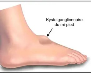 Un kyste ganglionnaire est une grosseur qui se forme le plus souvent dans les articulations, comme le poignet, les chevilles ou les pieds. Il peut être assez petit, de la taille d’un pois, ou atteindre un diamètre de 2,5 centimètres. Ils ne sont pas cancéreux et sont remplis d’un liquide semblable à de la gelée. On les appelle parfois kyste biblique ou bosse biblique, plutôt que le terme officiel de ganglion.